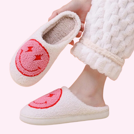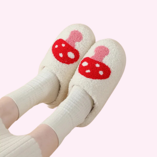 Cute & Fluffy Slippers With Hearts & Mushroom Design