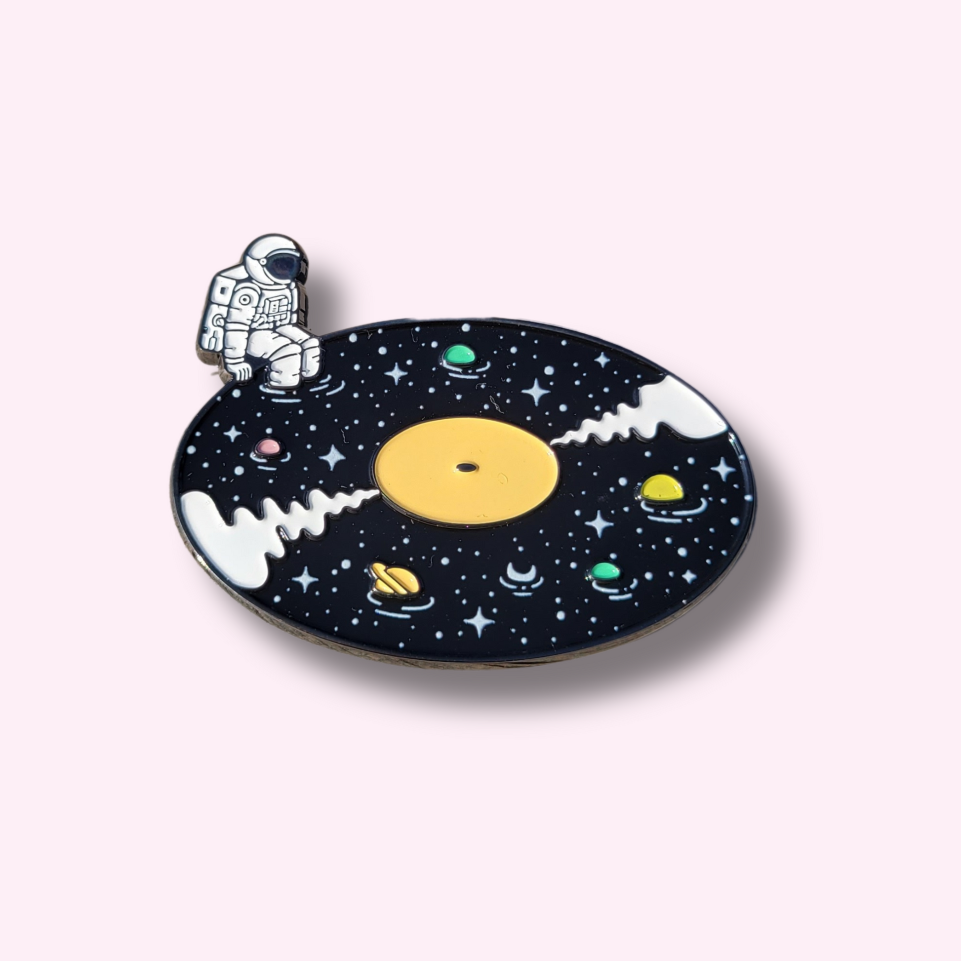 Astronaut Over Vinyl Shaped Galaxy Enamel Pin