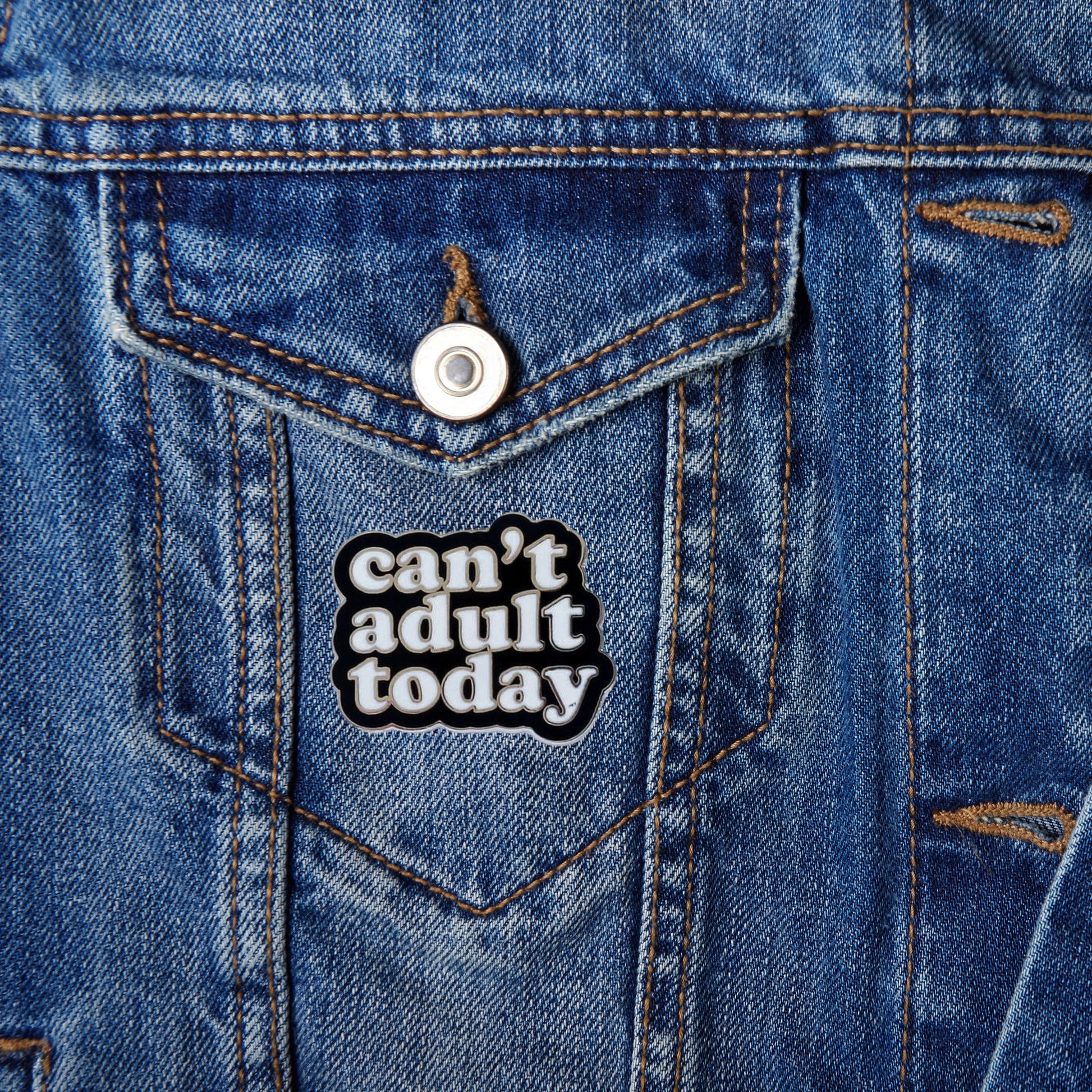Funny "can't adult today" enamel pin. Ideal for any season throughout the year, you can wear in your clothes, hats or pin it in your backpack or bags. It's also a perfect gift for anyone that loves collecting pins.