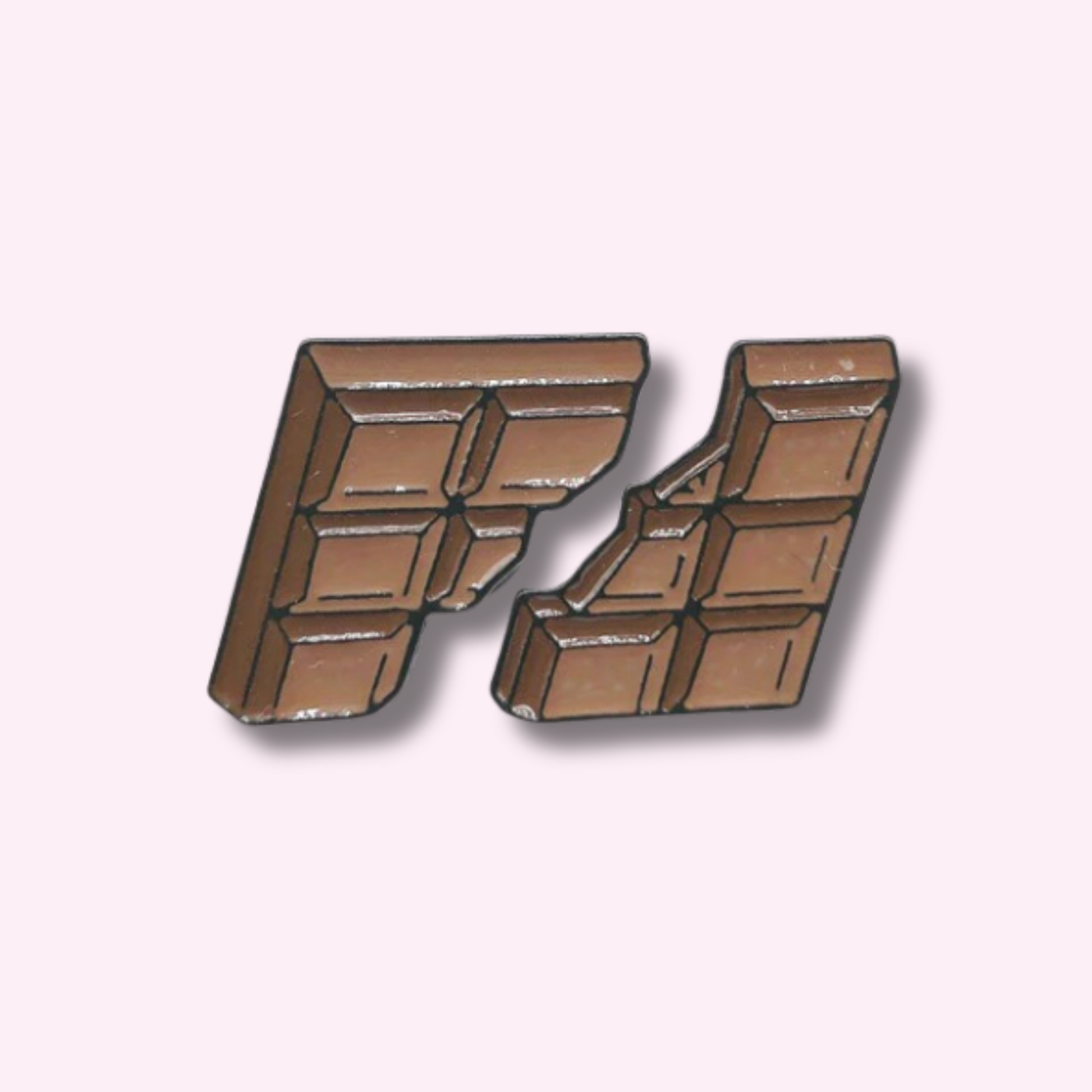 Cute chocolate bar enamel pin, for chocolate lovers and also anyone who likes sweets. The design includes 2 pieces of a broken chocolate bar. Ideal for gifts, kawaii gifts; you can wear in your clothes, hats or pin it in your backpack or bags.