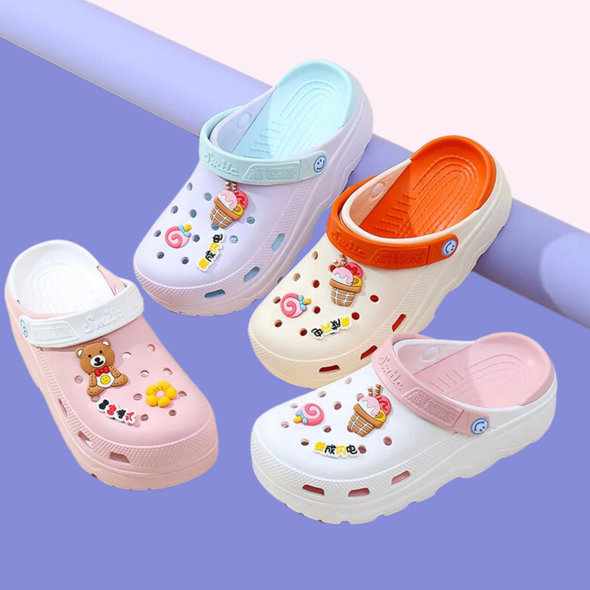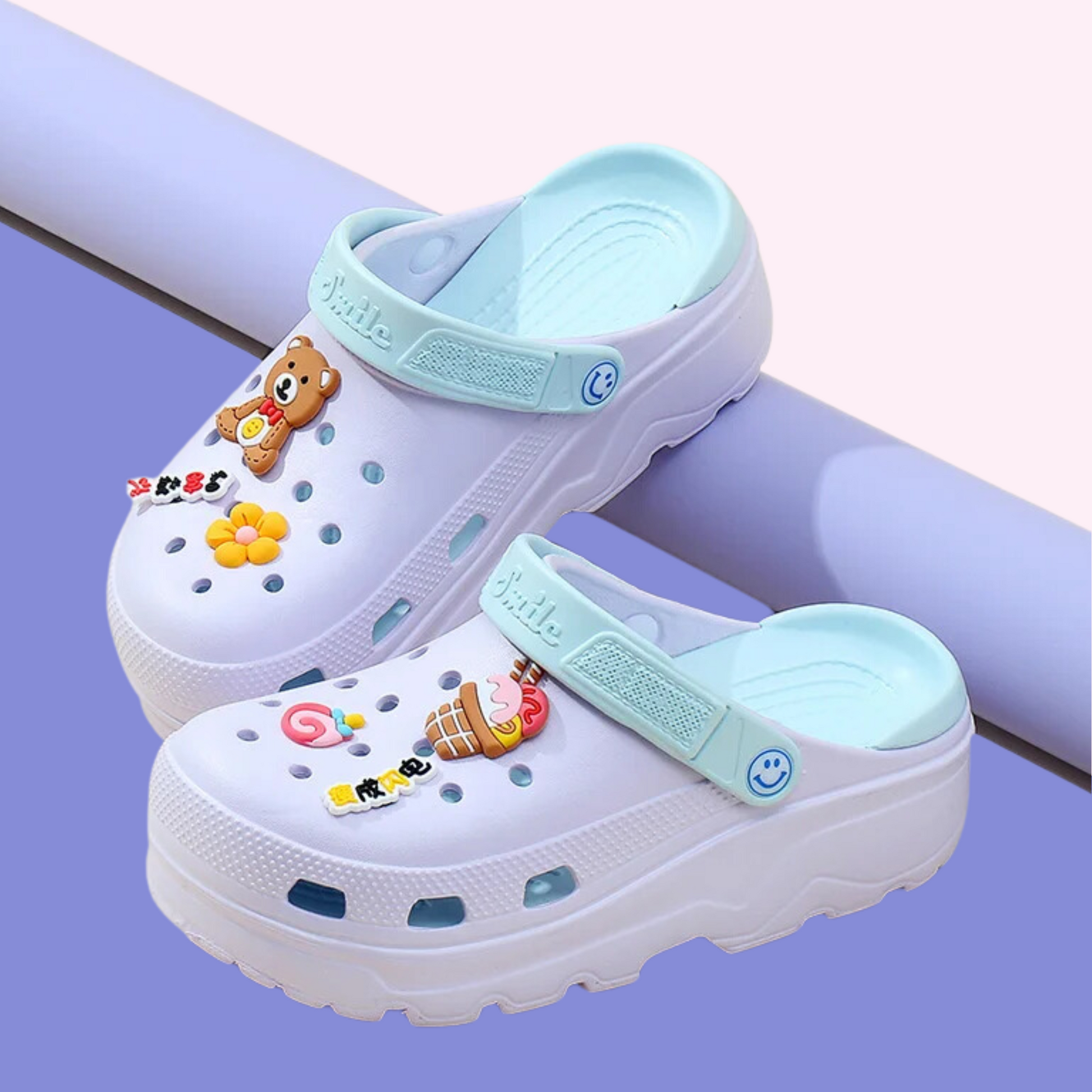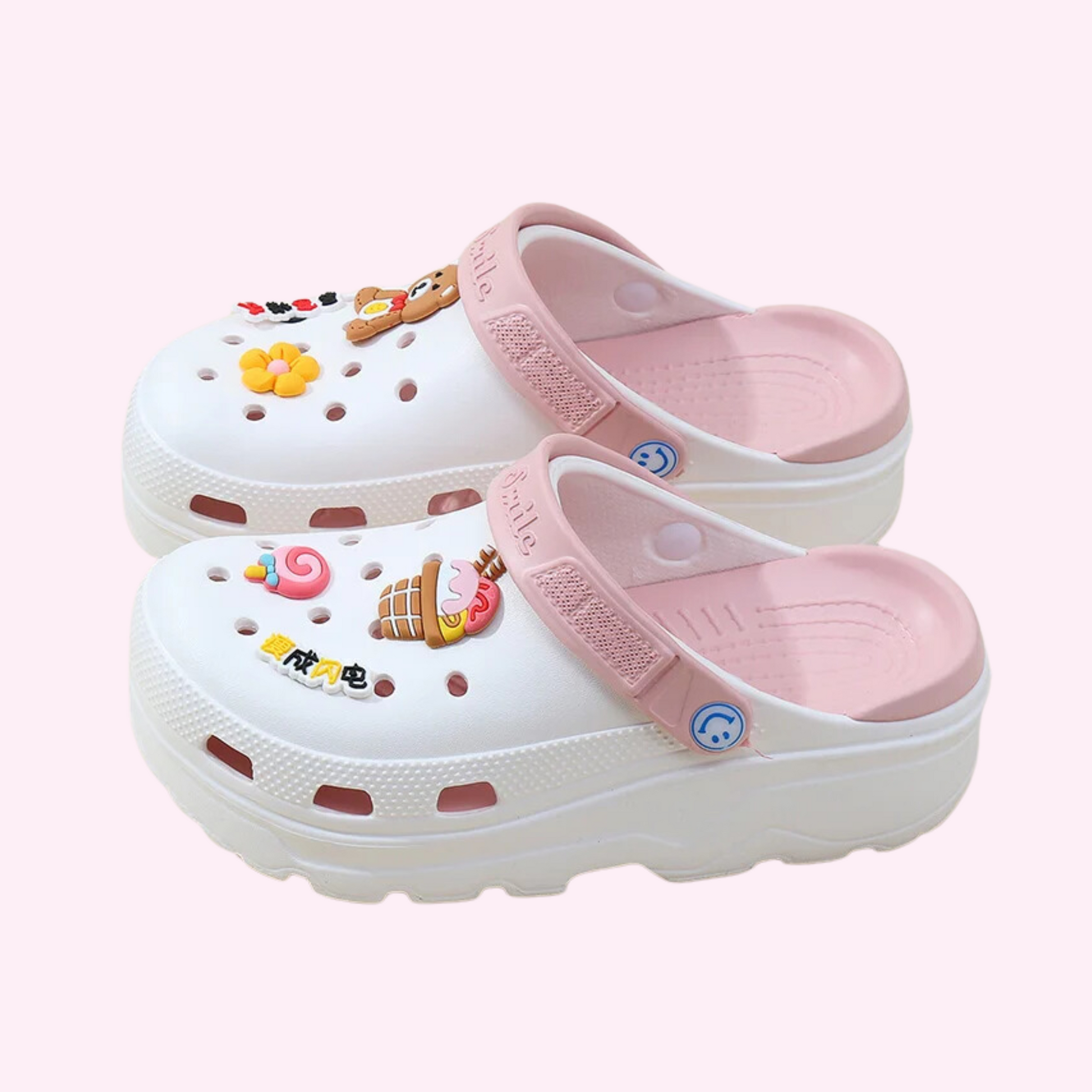 Beautiful and unique sandals for women. Available in white, black and pink including beautiful and colorful charms for an eye catching style.