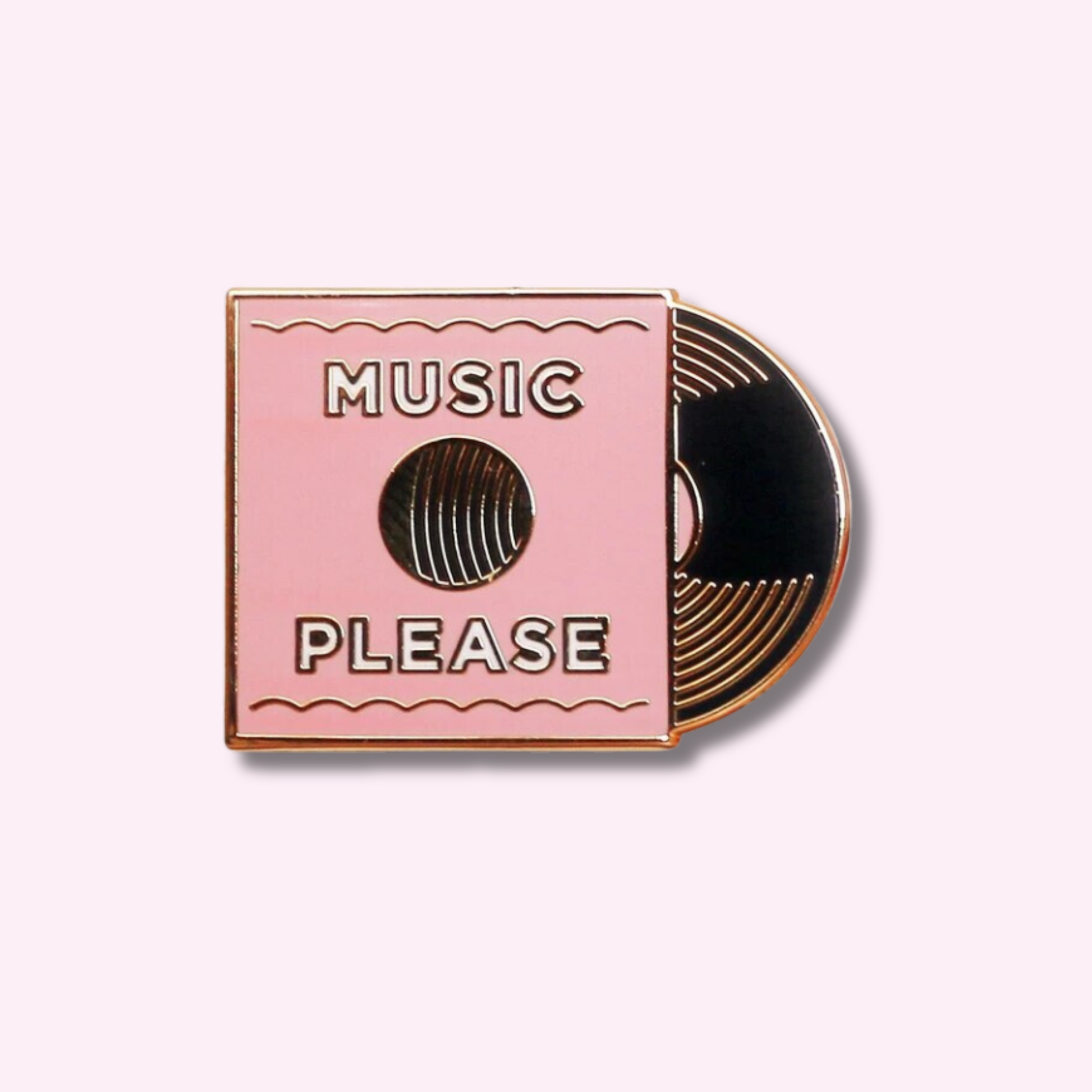 Cool "Music Please" enamel pin, with a retro LP vinyl album record. Ideal as gifts for music lovers. Easy to pin in your clothes, hats or backpack/bags and adorn it with a touch of your personality and style.