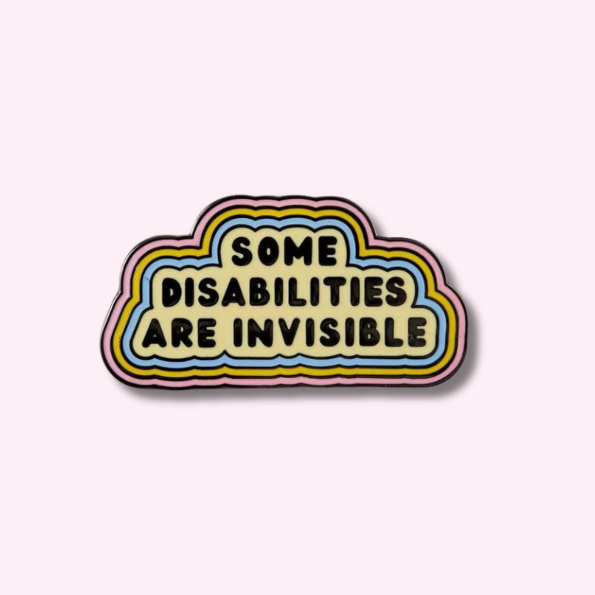 "Some Disabilities are Invisible" enamel pin is a colorful and eye-catching accessory to bring disability awareness. Positive and motivational pin to wear it in your jacket, tops, hats or add it to your bags. Share this strong message with others.