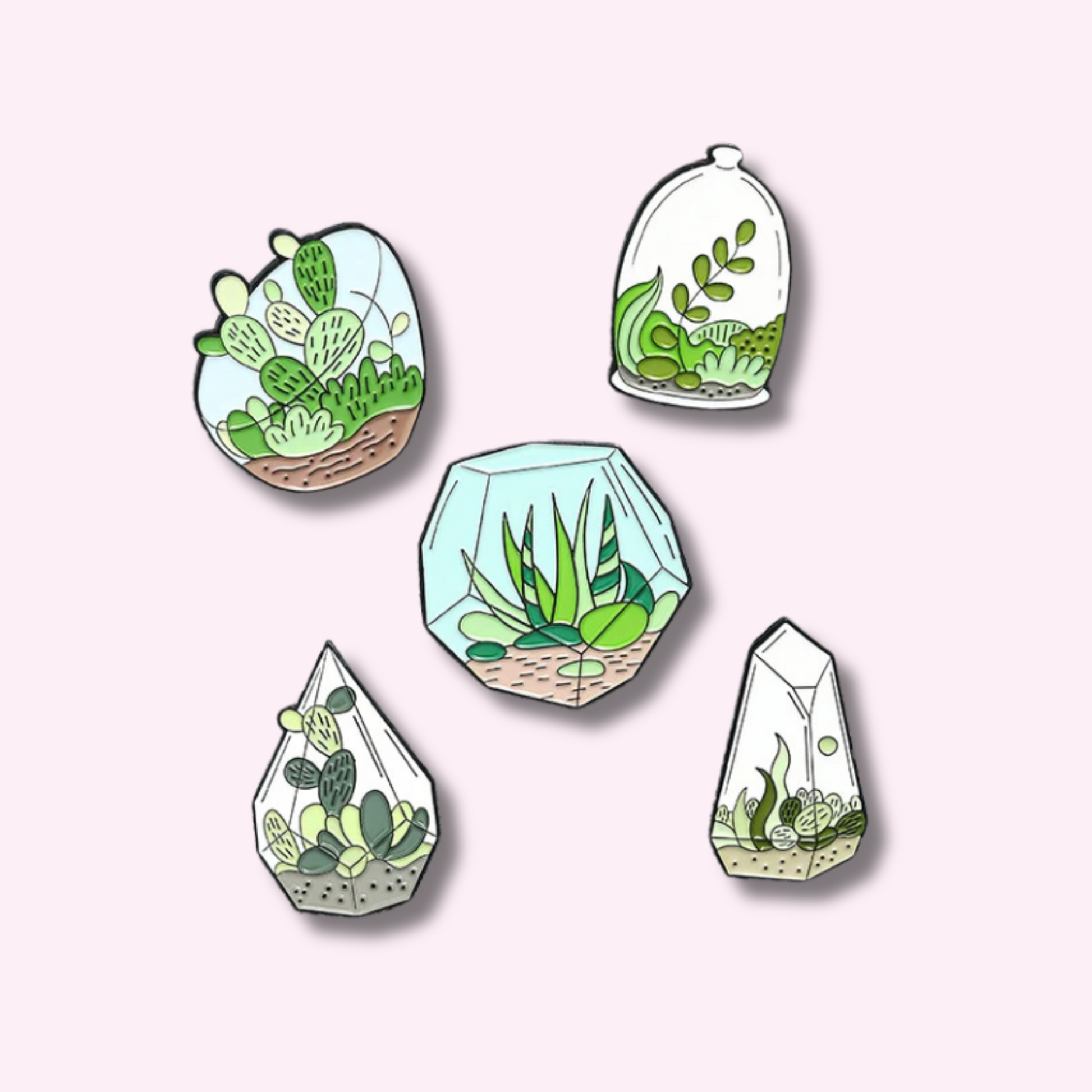 Cute and botanical set of 5 enamel pins for anyone who love succulents and also to share a positive save the planet, be green, and protect the environment awareness.